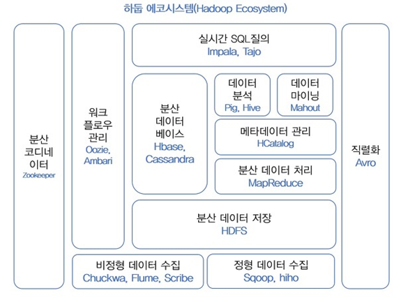 | hive, Pig, R : 데이터 프로그래밍 언어 pig(야후) : 데이터 처리 hive(페이스북) : 데이터 웨어하우스 r(오픈소스) : 데이터분석 |